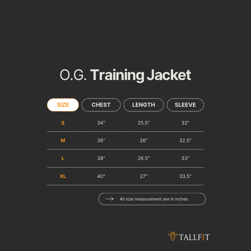 Designed exclusively for tall women, the TallFit O.G. Training Jacket combines practicality with sleek style. Featuring extra-long sleeves (32–33.5 inches), this jacket provides full coverage and comfort for running, yoga, or casual outings. Thumbhole cuffs and a tailored silhouette enhance functionality, while convenient pockets and a zipper closure keep your essentials secure. Pair it with our TallFit O.G. Leggings or Straight Leg Pants for a cohesive, polished look that transitions seamlessly from activity to leisure.